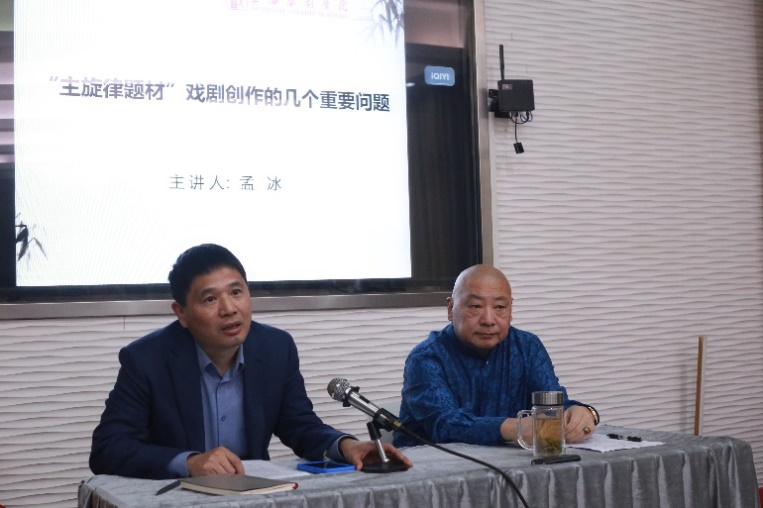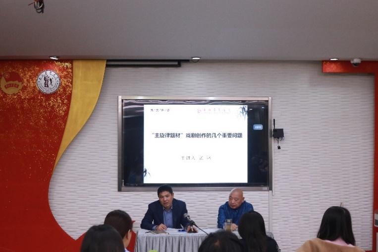 近日,由戏剧文学系党总支主办的“戏文讲堂”邀请到了中国戏剧家协会原副主席、原总政话剧团团长、国家一级编剧孟冰教授。孟老师围绕《“主旋律题材”戏剧创作的几个重要问题》开展了一堂生动的专题讲座。讲座期间,孟冰老师分享了自己多年来的创作心得和体会,讲述了多部作品的创作历程,师生们得以近距离地了解到经典主旋律戏剧作品的诞生过程。戏剧文学系主任、党总支副书记陈军教授主持本次讲座,全校师生积极参与,认真聆听,受益匪浅。
