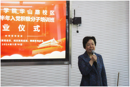 党委副书记胡敏老师给同学们提出三点希望:希望同学们做真正名副其实的入党积极分子:在同学中成为一支先锋队伍,不断加强理论学习,增进对党的认识。要平常看得出来,关键时候站得出来,危难时刻冲得出来:在学业发展、学生工作、社会实践等活动追求卓越,服务同学上无私奉献,勇做先锋,敢于担当。要“未进党的门,先做党的人”:入党是一个长期的过程,需要持续不断地学习,但首先要解决在思想上入党的问题。期待同学们在各方面取得长足进步,不断地向党组织靠拢,早日成为一名合格的共产党员。