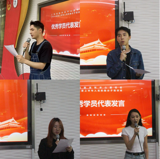 四院系优秀学员代表上台分享自己在培训班的学习心得。表演系本科生杰苏尔同学在党训班上聆听了优秀师哥师姐们的故事后,认为他们用实际行动诠释了党员的先进性,无论是投身公益,还是在专业领域内不懈追求,都让他深切感受到,作为一名党员,不仅要追求个人的卓越,更要心系国家,服务人民,更加坚定了他为实现中华民族伟大复兴的中国梦而努力学习的决心。