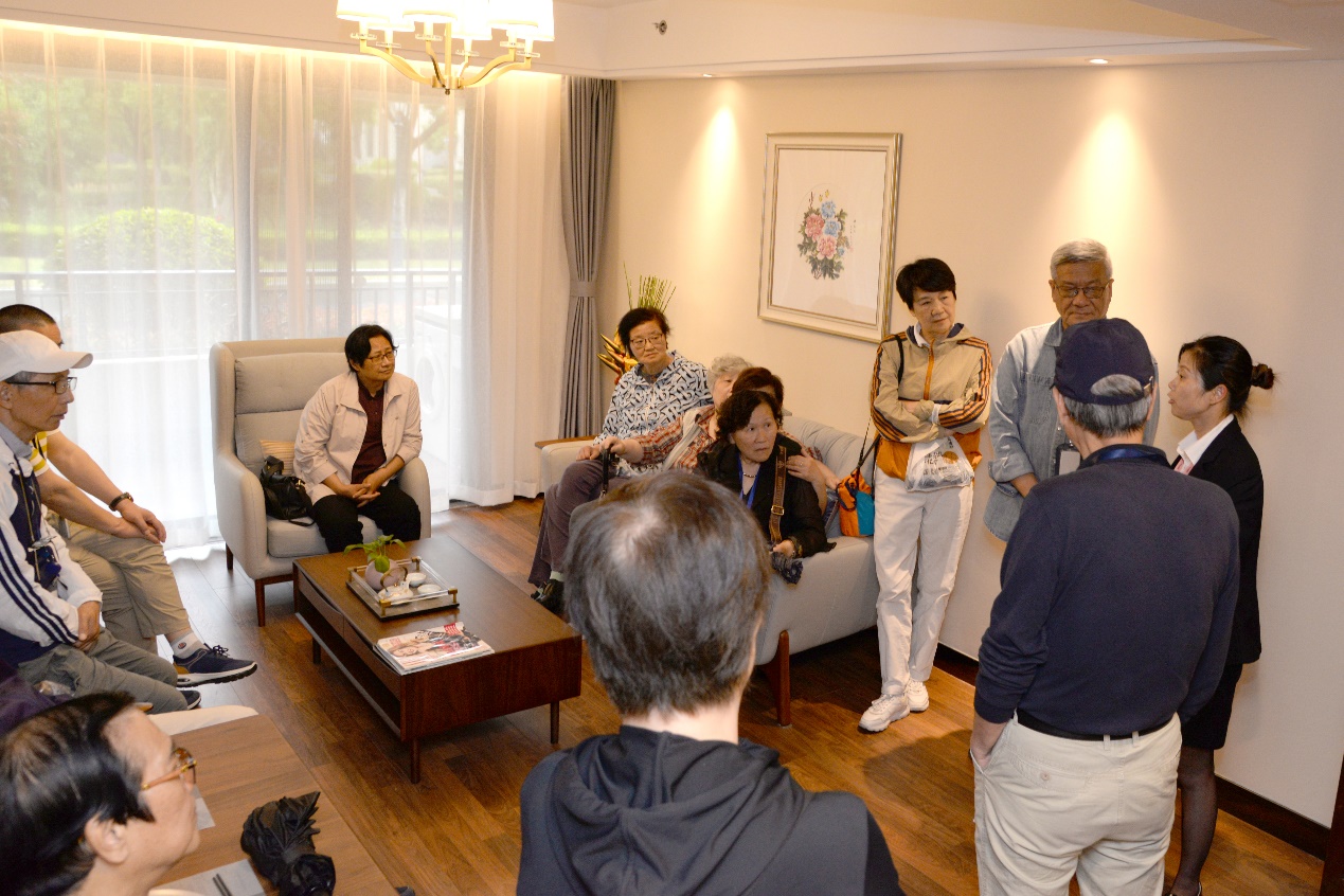 下午,大家来到金山颐和苑老年服务中心考察。在中心工作人员的带领下,老同志们参观了老年服务中心的样板房、各项生活服务设施设备及医养医护设施等,并于当晚入住养老中心体验,实地考察感受颐和苑结合“养老、养护、护理”三位一体,以“家”为目标管理,“田园”为生活环境,以“幸福养老”为核心理念打造的“家庭式养老养护”模式。