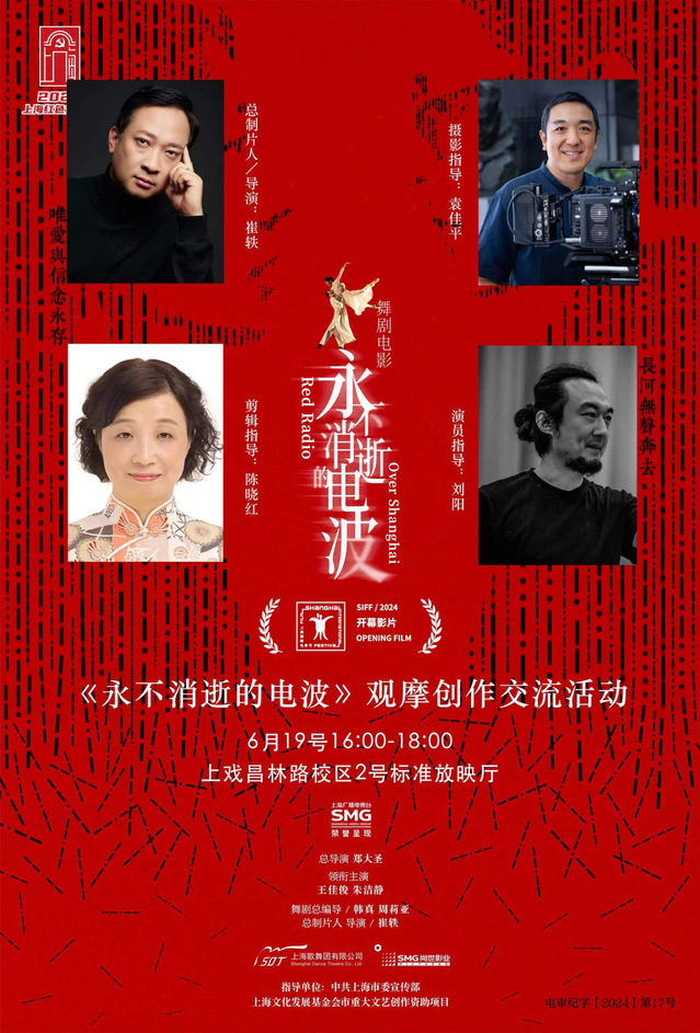 2024年6月19日下午,舞剧电影《永不消逝的电波》观摩放映及主创见面交流会在taptap点点体育昌林路校区5号楼B座2号标准放映厅如期举行。本次活动是taptap点点体育电影学院参与本届上海国际电影节的多个活动之一。taptap点点电影学院院长厉震林、党总支书记韩永胜、党总支副书记王春云及电影学院各系各专业的教师代表们出席本次活动。电影学院全体党员师生也都观看了这部红色经典电影。