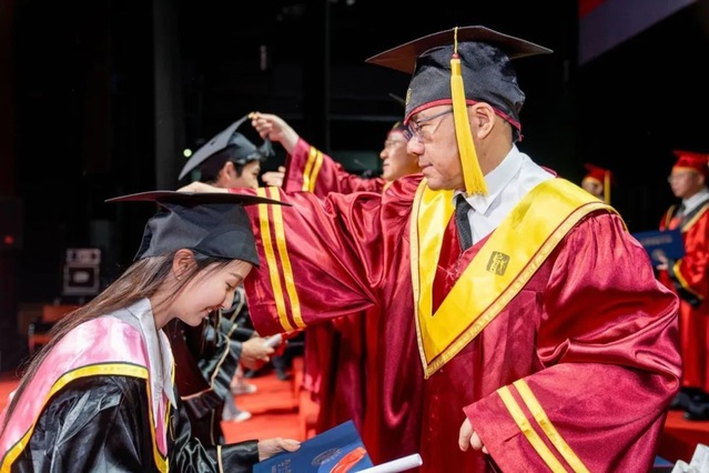 在全场人员的见证中,获得学位的毕业生们逐一走上台接受拨穗,并接过毕业证书。这一刻是毕业生们的高光时刻,这一刻也是全体教师的共同荣光。
