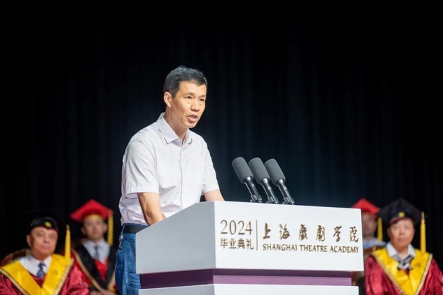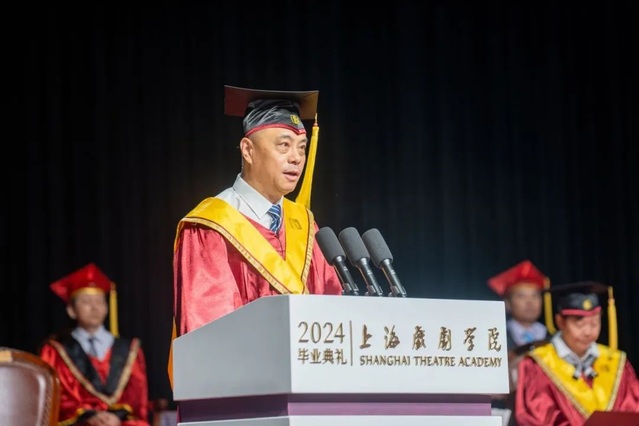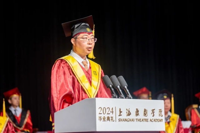 舞台美术系1989届校友,著名导演、制作人沙晓岚,以校友代表的身份为2024届毕业生送上寄语。沙晓岚校友主导的2022北京冬奥会开幕式、2023杭州亚运会开幕式惊艳世界,而他却以平实朴素的语言勉励毕业生们:走出校园后,要做一名“眼里有活”、真诚待人、低调做人的创作者;做一名艺术与美的创新者,以创意呈现中国之美;在人工智能时代,勇于直面挑战,不断探索拓维。