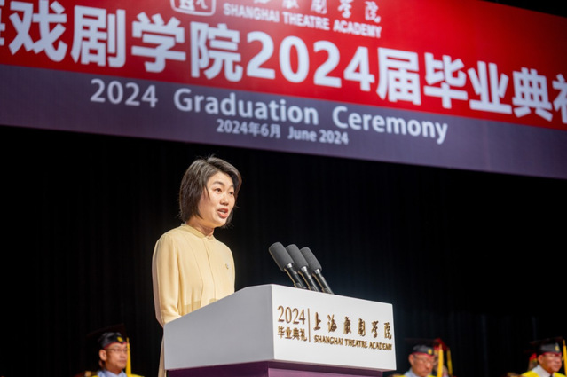 表演系(含音乐剧中心)主任肖英作为教师代表,带来了师长在学校的“最后一堂课”。她以“真实地和自己交流”“真心地和他人交流”“真诚地和所处环境交流”为期望,告诫毕业生们今后在角色、身份、情境的转换中不忘初心,久久为功。在未来的艺术征途中,秉持taptap点点家园精神,扮演好自己的社会角色,讲好自己的人生故事,这样才能更好地讲述中国故事。