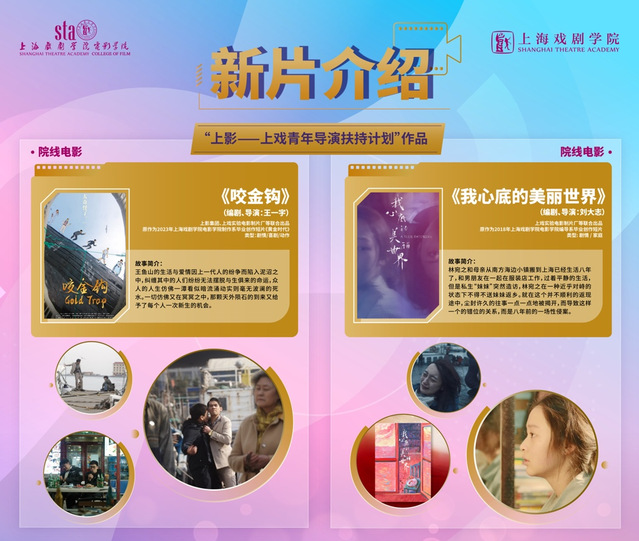 第三展板“新片介绍”则展示了实验电影制片厂正在筹拍的两部影片——《咬金钩》(暂名)和《我心底的美丽世界》。这两部作品不仅体现了电影学院对于原创故事的深入挖掘,也展示了其在电影制作方面的创新精神。