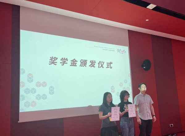 6月20日开幕当天,主办方在上图东馆举行了仪式,为作品入选的学生颁发证书。波克城市、鹰角网络、懿百动画等ACG行业龙头企业,也设置了特别奖学金,颁发给他们各自看中的学生创作者。美影厂、B站嘉宾为获得奖学金的同学颁发了证书。
