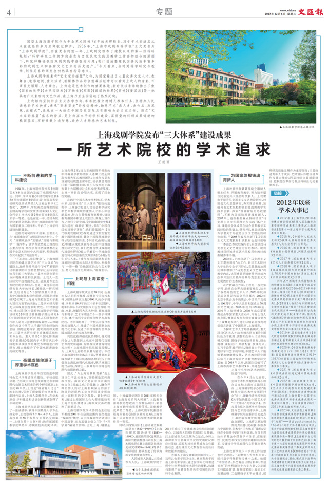 值得关注的还有两所附属中专的人才培养和专业建设。戏曲学校梨园传承彰显专精品质,舞蹈学校舞姿翩跹尽展海派风范。非学历教育则在努力做精做强,不断满足人民群众日益增长的对艺术教育的需求。
