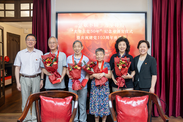 6月28日上午,“弦歌不辍,芳华待灼”——“光荣在党50年”纪念章颁发仪式暨庆祝建党103周年座谈会在华山路校区党建活动中心举行。学校老、中、青三代党员代表齐聚一堂,抒发爱党情怀,展望美好未来。校党委书记谢巍、党委副书记胡敏出席座谈会。座谈会由组织部部长刘春友主持。