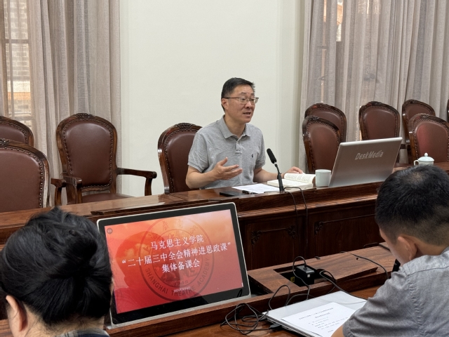 在备课会上,谢巍书记和胡敏副书记充分肯定思政课教师学习二十届三中全会精神的成果,对于思政课教师备课分享中涉及的问题进行研讨。胡敏副书记还就《习近平文化思想》专论课试点开课的相关工作进行布置安排。
