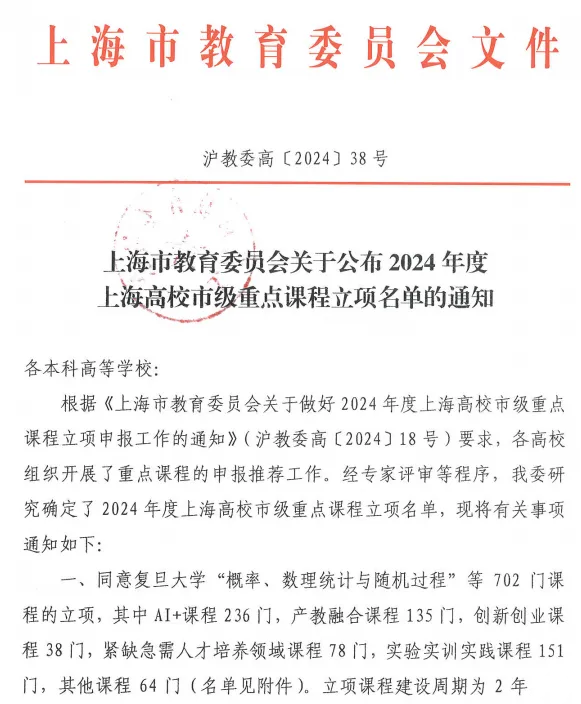 近日,上海市教育委员会公布了2024年度上海高校市级重点课程立项名单。taptap点点体育推荐的9门课程全部获批立项,立项率100%。