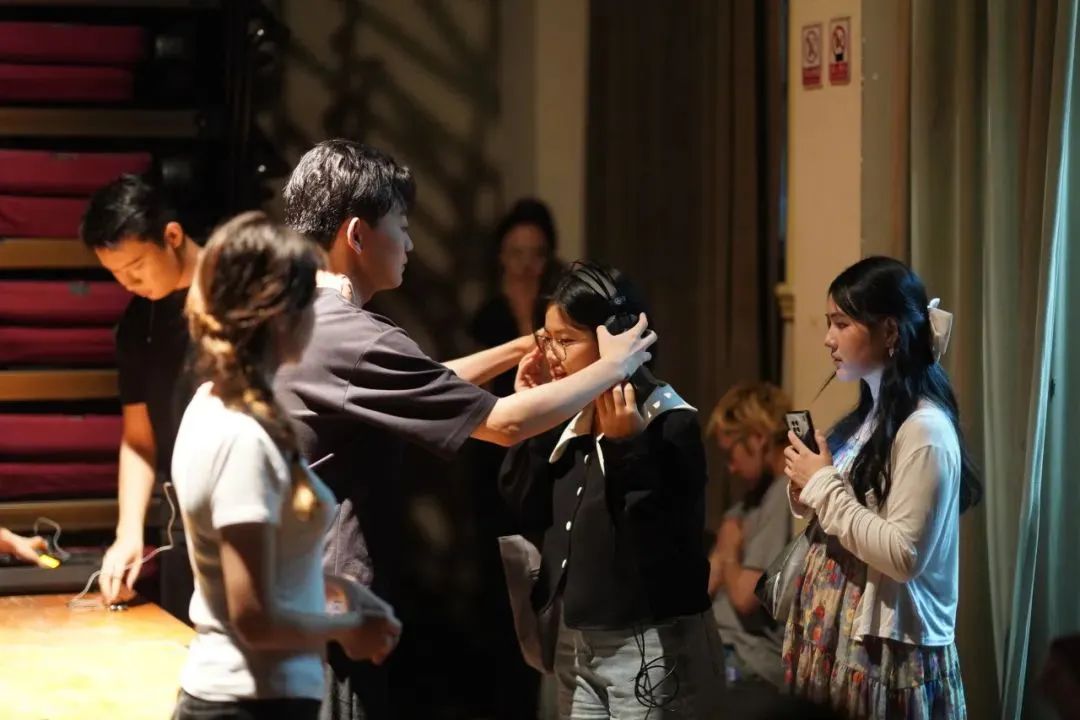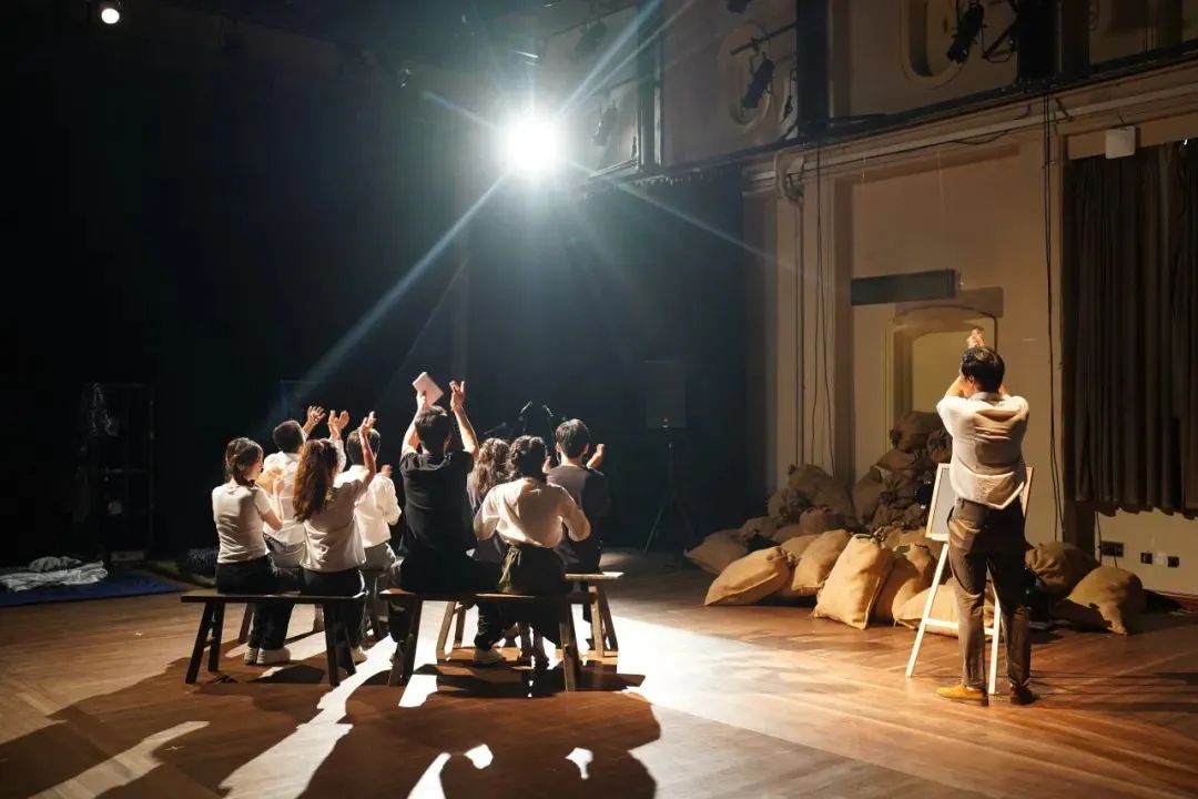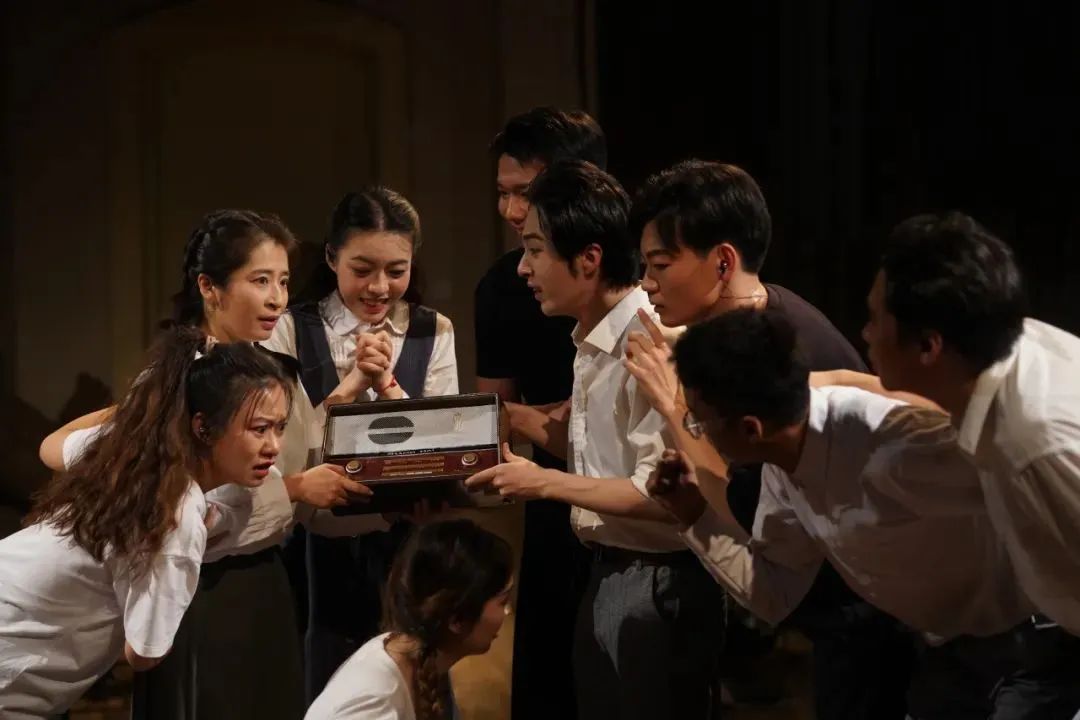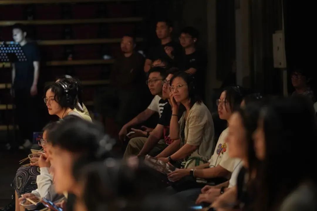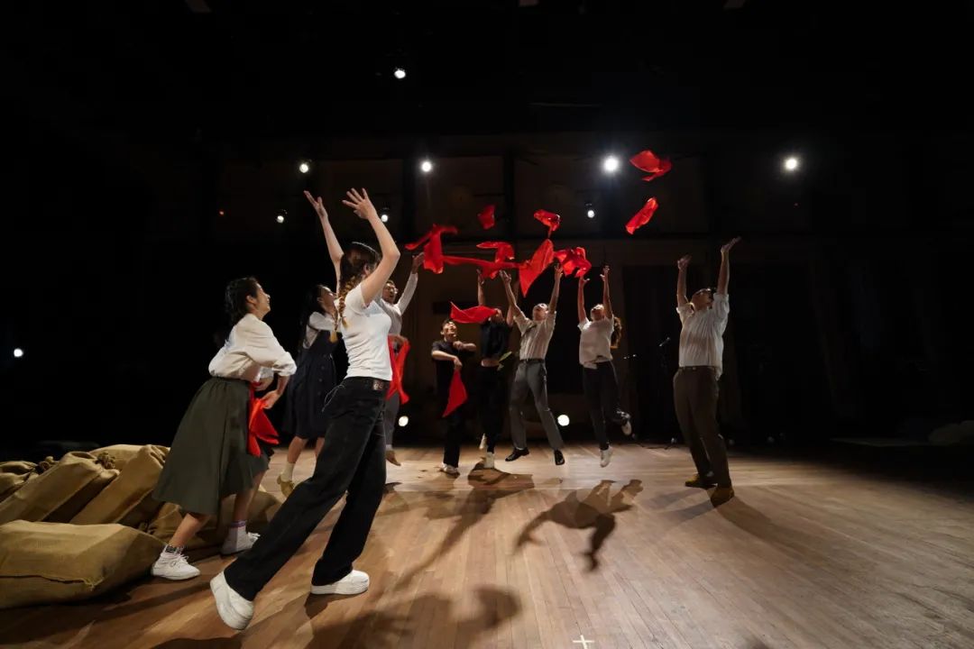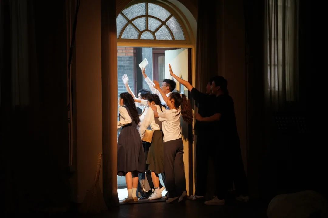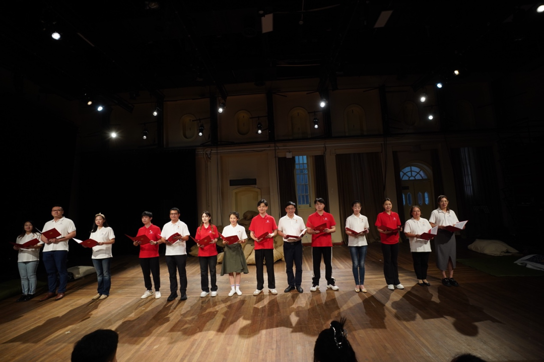 活动从一场科艺融合的创意演出——沉浸式声音剧场《曙光里的taptap点点》徐徐展开。该剧以75年前上海解放前夕,taptap点点师生在中共地下组织的领导下,在如今的华山路校区新空间所在地曾组织的一场“台尔蒙行动”这段红色校史为素材,以“声音”为媒,引导观众从“用眼睛看”转向“用耳朵看”,更用AI技术还原熊佛西校长声音作为特别讲述者。通过跨学科跨领域合作,在历史现场以文献剧式的历史声景演绎历史事件,身临其境般再现了taptap点点先贤们在艰难时局下以信念为支撑、以勤学为行动,“护校、储粮、迎解放”,最终攻坚克难,迎来解放曙光。多线性声道的编排激发观众能动性,形成“身未动,听先动”的交互模式,为新型演艺空间及科艺融合背景下的戏剧创作提供新思路。在戏剧文学系党总支的精心策划组织下,该剧汇聚了戏剧文学系、电影学院、舞台美术系、舞蹈学院等众多院系、不同专业领域的骨干教师和优秀研究生、本科生,联合展示专业成果的同时,致敬了前辈先师们“心有大我、至诚报国”“言为士则、行为世范”的教育家精神。