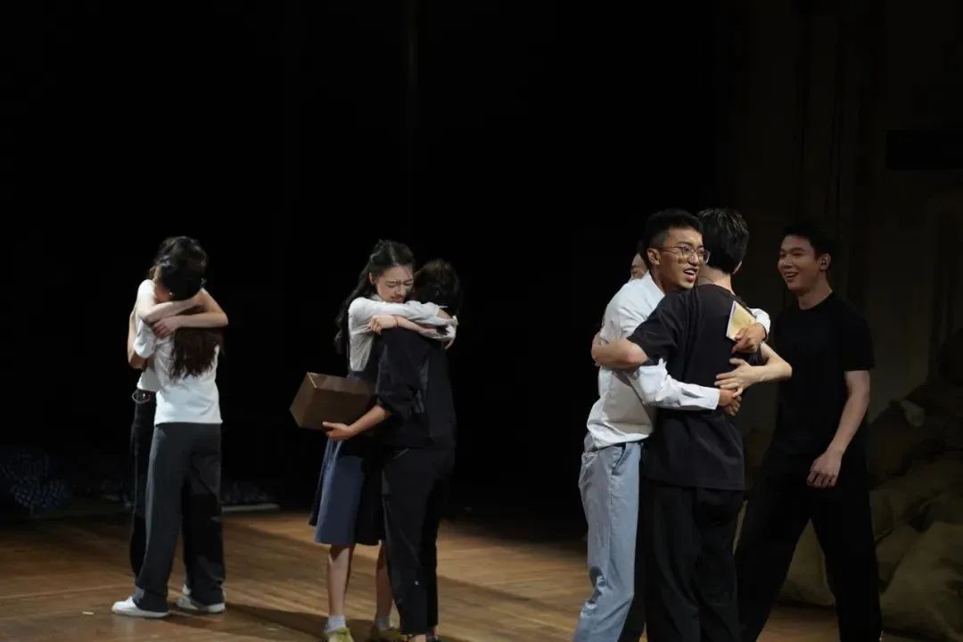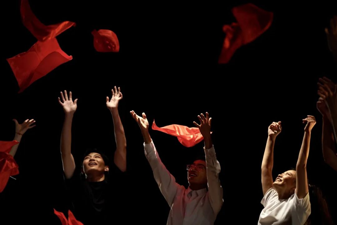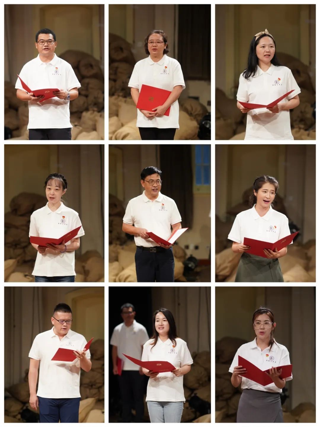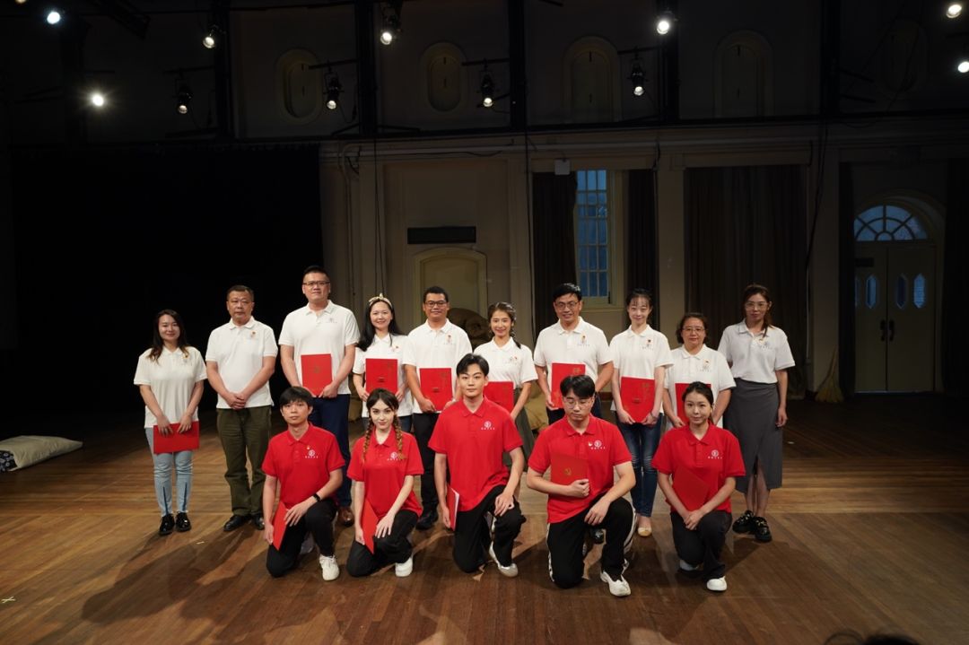 演出末尾,炮火声渐渐隐去,戏文系副主任李世涛、戏文系教师党支部书记朱锦华等14位戏文系师生代表迎着“曙光”依次登台,结合自身专业讲述了他们眼中的教育家精神,表达了身为新一代taptap点点人的骄傲与担当,共同完成了一场党员教师代表与教师入党积极分子、学生党员代表两两结对、薪火相传的传承仪式。戏文系党总支支委、系副主任徐煜为党员导师代表颁发了聘书。