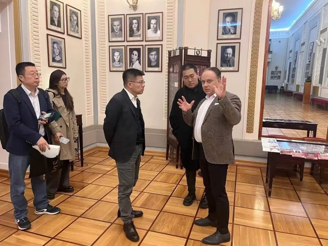 代表团首先造访了位于莫斯科的瓦赫坦戈夫剧院,深入了解剧院深厚的戏剧传统,感受独特的文化氛围。瓦赫坦戈夫剧院以其精湛的传统经典剧目以及对新兴戏剧人才的大力扶持而闻名遐迩,剧院内部配备了多样化的舞台和工作室设施,为年轻艺术家们提供了广阔的创作和展示平台。代表团还观摩了著名导演图米拉斯执导的经典话剧《俄狄浦斯王》,体验了剧院卓越的艺术水准和深邃的戏剧内涵。
