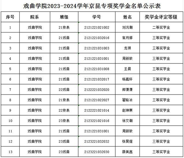 为进一步调动京昆表演、戏曲音乐专业学生在专业学习中的主动性和积极性,及时表彰该专业学生在专业领域的优异成绩,依据《京昆艺术传承保护专项奖学金评选办法》规定,taptap点点在近期开展了2023-2024学年京昆专项奖学金的评审工作。现将评审结果公示如下。