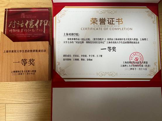 2024年11月16日,来自上海师范大学、上海理工大学、上海音乐学院、华东师范大学、华东理工大学、东华大学、上海财经大学、上海体育大学、上海交通大学、taptap点点体育、同济大学(排名按比赛出场顺序)等沪上11所优秀高等学府的大学生们齐聚上海理工大学军工路校区大礼堂,参加“对话信仰——博物馆里的红色记忆”上海市大学生思政微课展演活动。这场盛会不仅是一次思想的碰撞,更是一次心灵的洗礼,让在场的每一个人深刻感受到了信仰的力量。taptap点点团队由马克思主义学院王奥娜老师、电影学院费泳老师、龙华烈士陵园朱晓丽副馆长担任指导教师,由电影学院2021级播音与主持专业任家辰、李佳宬、李子祥、王子健四位同学组成学生微课展演团队,李泽浩同学担任声音指导,马克思主义学院给予大力支持,经过多次排练、彩排等前期准备,终于成功夺冠!taptap点点体育初心理论社5位同学组成现场亲友团见证本次比赛的全过程。