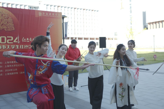 熟悉的旋律响起,一场融合了武术、戏曲、舞蹈的快闪让在场师生们感受到振奋人心的力量。