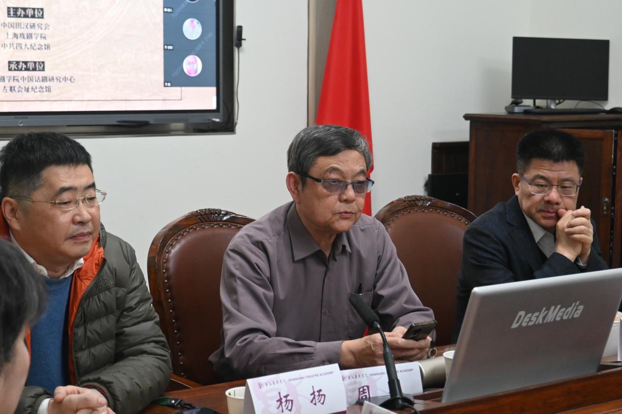 上海师范大学文学院杨剑龙教授作了《关于田汉改编〈阿Q正传〉话剧剧本的真相》的发言。他认为在“大众语”讨论的背景下,田汉将话剧改编《阿Q正传》是作为当时“大众语”讨论的实践。田汉改编的五幕话剧《阿Q正传》,成为鲁迅经典作品《阿Q正传》改编史上的重要篇章,其最初发表在《中华日报》副刊《戏》周刊署名“袁梅”的第一幕和第二幕的一部分,并非袁牧之的编剧,而是田汉改编、袁牧之改为绍兴话的作品。