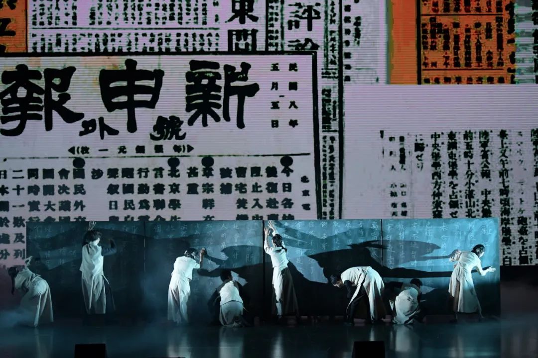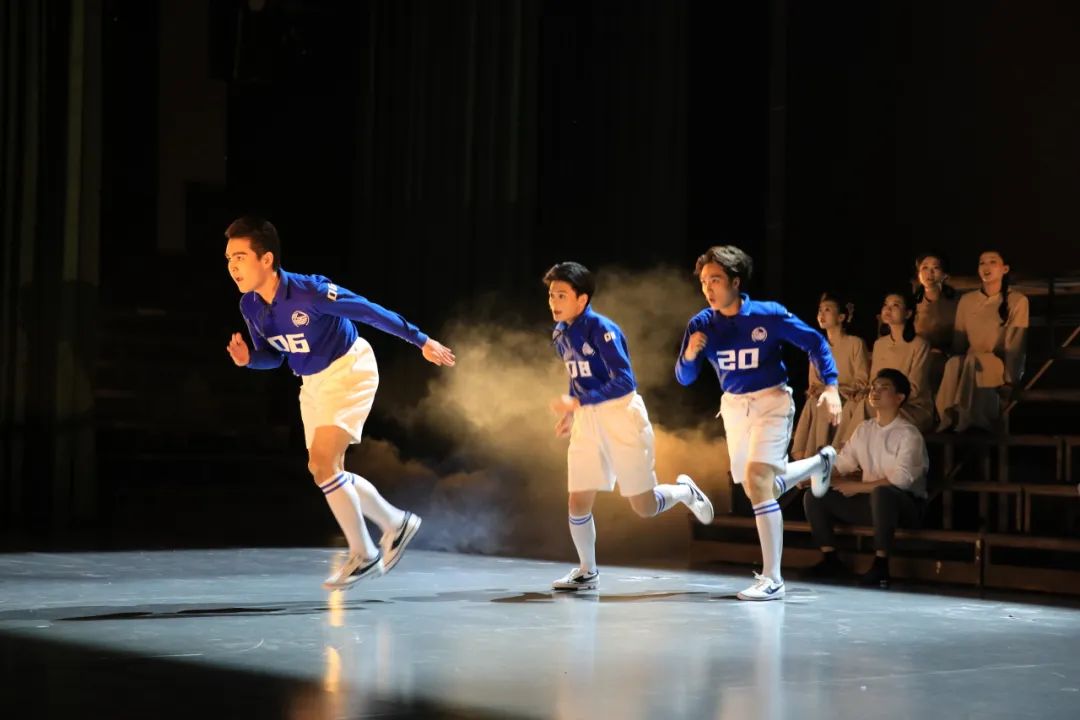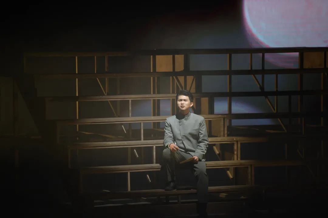 大量的对称性构图、焦点透视调度以及冷暖色彩的对比使用,让整个舞台始终在自由流动中呈现出仪式感与神圣性,也让观众始终感受着青年一代的热血与蓬勃的生命力。
