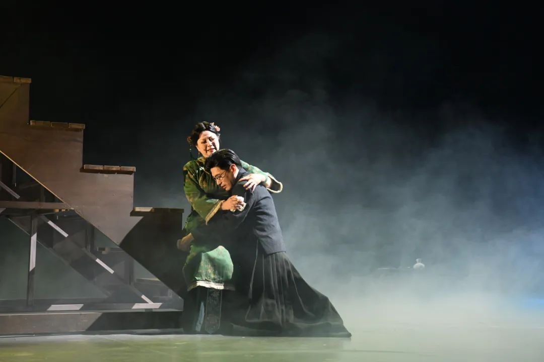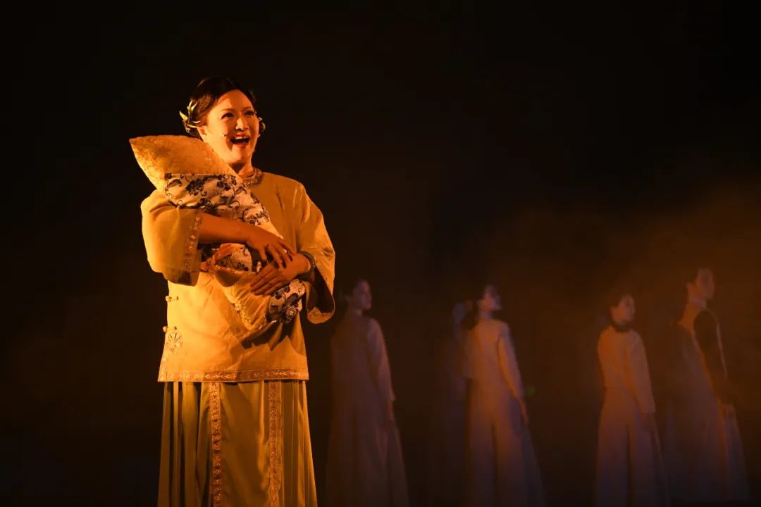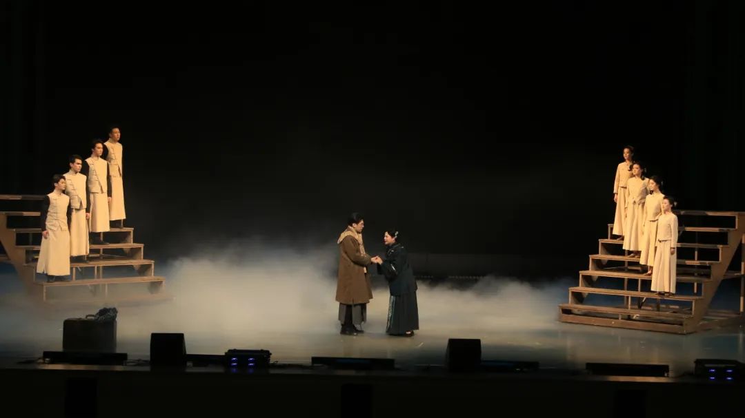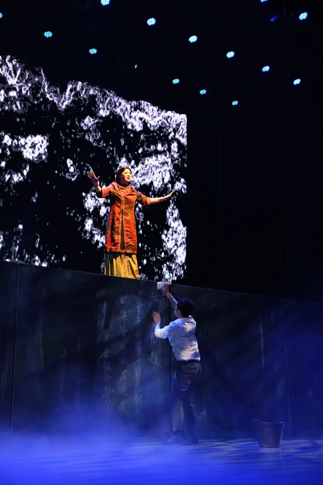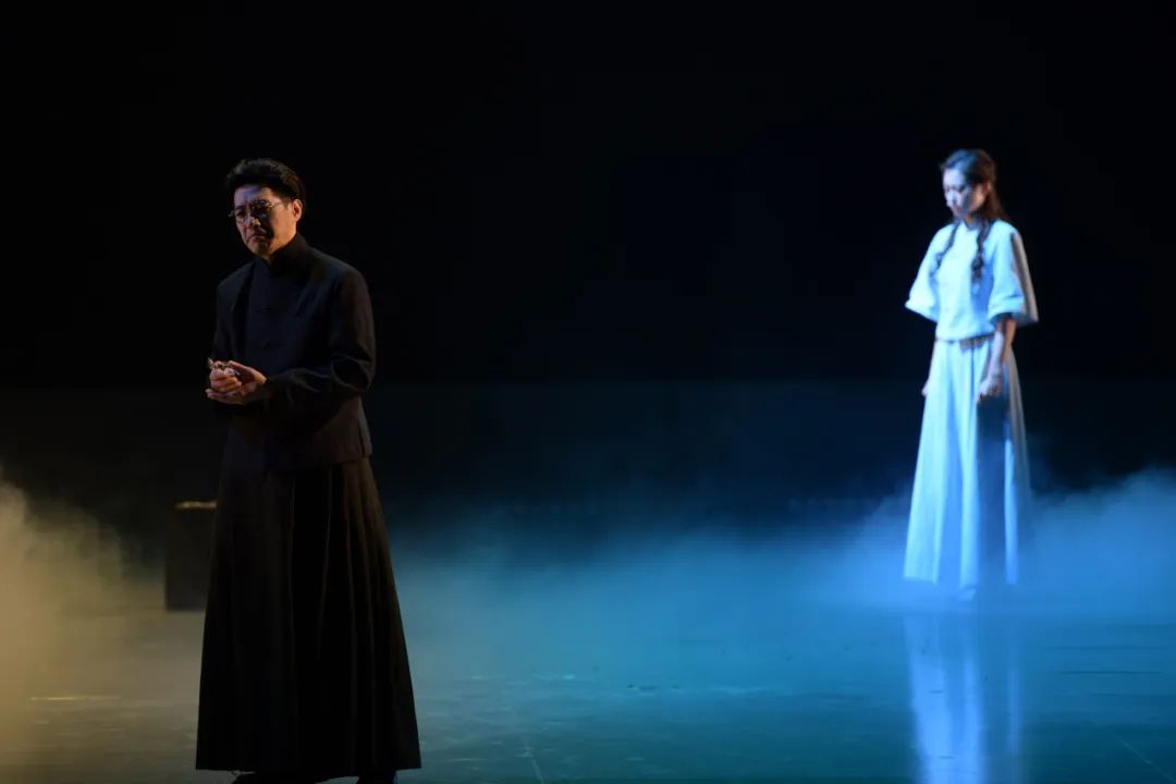 在最后一场戏中,张闻天与歌队成员在歌声与自白中融为一体,此时站在阶梯上的歌队已然化为张闻天,而此时台上的所有角色已然化成了中华民族的所有儿女们。歌队诵出“妈妈,我已经决意去接受了,我将认真地要开始做一个无私的光明的追随者了,借精神上的帮助自己变做光明,照澈这个黑暗如漆的世界”时,话剧、小说、现实、回忆全融于舞台上这一瞬,歌队位列张闻天两侧的阶梯上,张闻天位于舞台正中,歌声以及对妈妈的告别萦绕整个剧场。