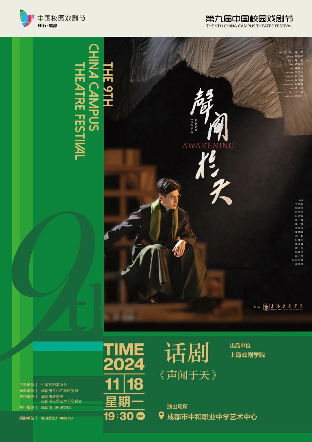 11月12日至22日,第九届中国校园戏剧节在四川成都隆重举行。本届校园戏剧节由中国戏剧家协会主办,成都市文化广电旅游局承办。