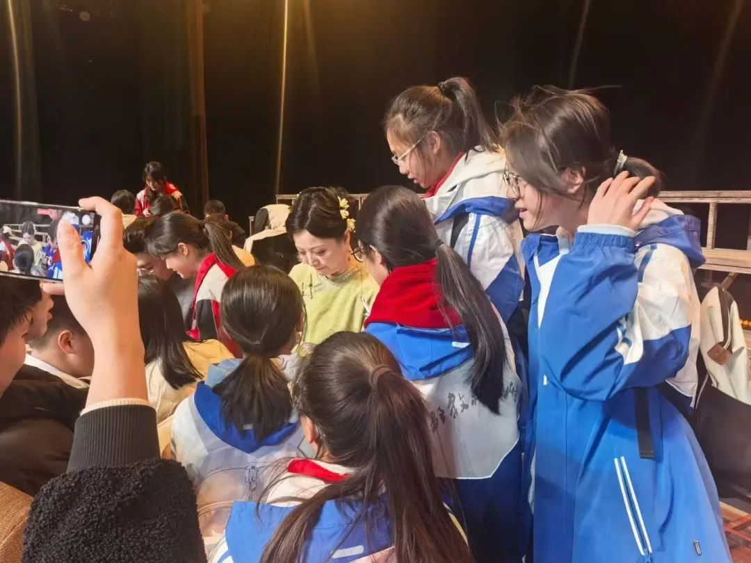 演出结束后,观众们久久不愿离去,在舞台上与演员老师们合影留念。充满青春朝气的初高中学生勇敢地走上舞台,找演员老师签名并表达对今晚演出的喜爱,这都给予taptap点点师生很大的鼓舞和继续前进的动力。