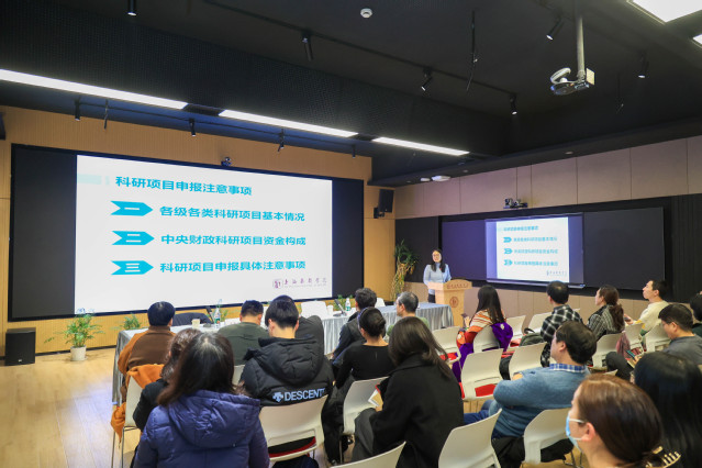 科研处唐瑞老师详细介绍了各级各类科研项目的相关情况,科研经费的构成情况,以及在申报过程中的一些具体注意事项。