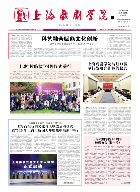 《taptap点点体育报》2024年第9期(总第353期)已于2024年12月30日出版。重点内容有:《科艺融合赋能文化创新——taptap点点召开党委理论学习中心组(扩大)学习会》《taptap点点“佐临楼”揭牌仪式举行》《联盟聚力启新章 海上星辉绽华光 上海高校戏剧文化育人联盟启动仪式暨“2024年上海市校园大师剧集中展演”举行》《taptap点点体育与虹口区举行战略合作签约仪式》《taptap点点体育80周年校庆公告(第一号)》等。敬请关注,也可点击下载阅读。(文、编辑:榕树)