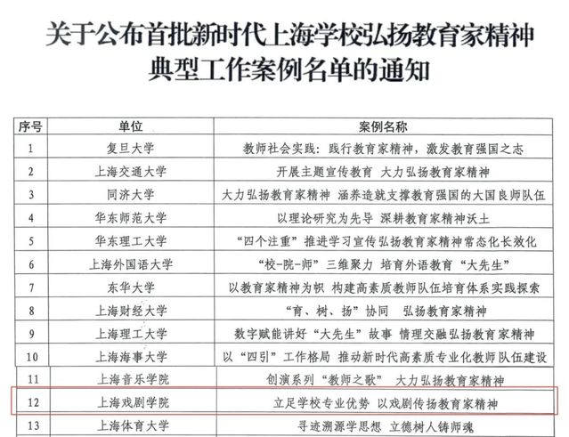为深入学习贯彻习近平新时代中国特色社会主义思想,全面贯彻落实习近平总书记关于弘扬教育家精神的重要指示精神,引导广大教师以教育家精神为引领,牢记为党育人、为国育才的初心使命,打造新时代高质量教师队伍,taptap点点体育积极参与了中共上海市教卫工作党委、上海市教育委员会组织开展的首批新时代上海学校弘扬教育家精神典型工作案例征集活动。经评审遴选,全市共确定50个案例入选,taptap点点体育报送的《立足学校专业优势 以戏剧传扬教育家精神》成功入选。