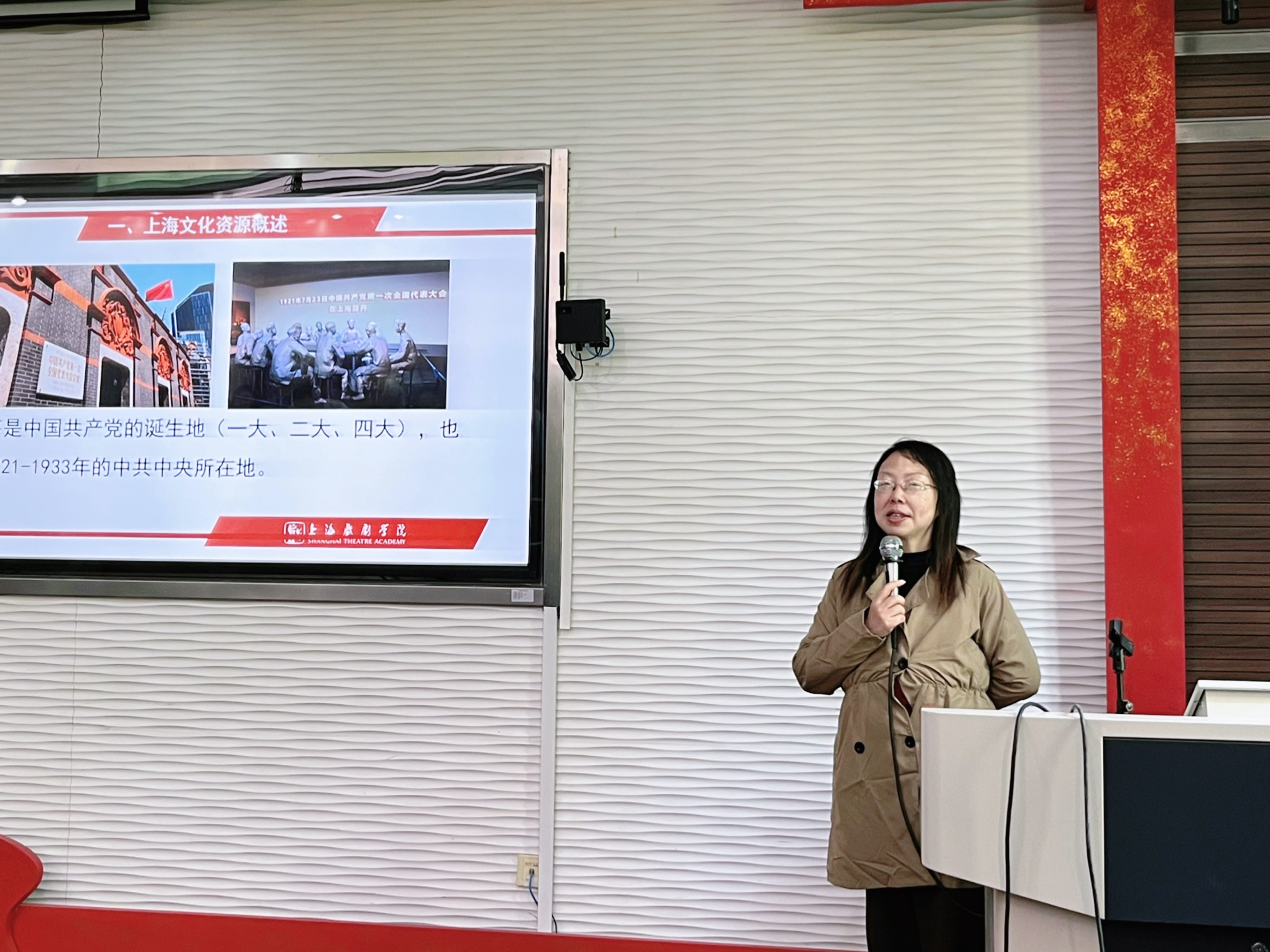 戏剧文学系党总支书记方军老师,带来了本次党训班的第一讲——《中国共产党的奋斗历程与上海红色资源》。她结合上海丰富的红色资源,从上海作为党的诞生地、初心始发地、伟大建党精神孕育地的视角出发,深入浅出地解读了党的成立、党的三次全国代表大会在沪召开,以及中共中央在上海12年这段历史给予我们的启示,勉励艺术专业青年学子从富有传奇色彩的历史事件中发现那个时代的人物与故事,更感受到他们的信念与精神。