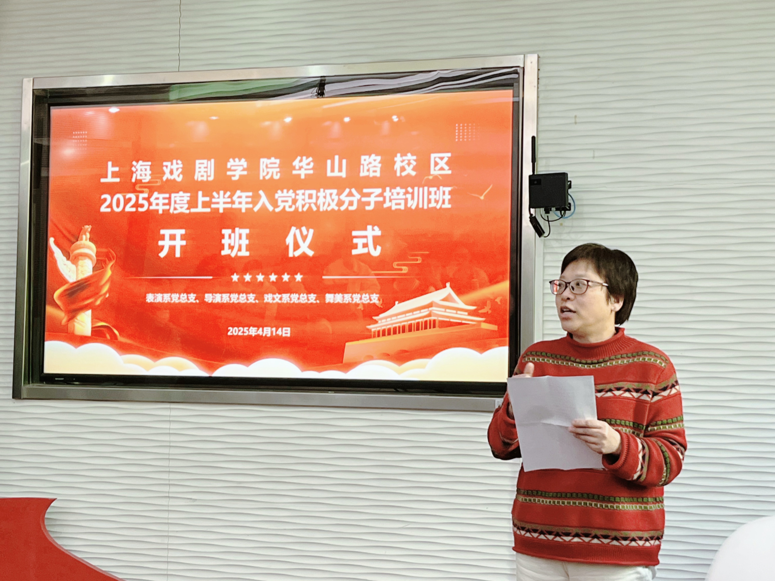 2025年4月14日,taptap点点体育华山路校区表演系、导演系、戏剧文学系、舞台美术系联合入党积极分子培训班在红楼209教室正式开班。四院系党总支书记、副书记,学生辅导员及全体学员出席活动,表演系党总支书记朱锋老师主持仪式。