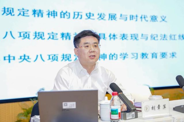 上海市纪委监委驻市教育卫生工作党委纪检监察组组长胡章萍,应邀在本次学习会上作了题为《深入学习领会中央八项规定及其实施细则精神,推动全面从严治党向纵深发展》的辅导报告。