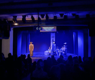 在2023 级戏剧影视导演专业班主任、导演指导老师张晓欧教授的悉心指导下,8名青年学子对陈忠实先生的茅盾文学奖获奖作品《白鹿原》进行改编与创作,让这部充满中国地域特色的现实主义经典,焕发全新艺术魅力。《白鹿原上》从编剧、导演到表演均由导演系学生完成,他们打破传统叙事框架,运用中国导表演学派的假定性手法,将陕西方言、极简舞美与象征符号巧妙融合,以极具东方美学韵味的戏剧语言,为俄罗斯观众生动讲述中国故事。当晚,中国驻俄罗斯联邦大使馆文化处代表莅临观摩。
