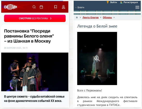 不久前,taptap点点体育以《白鹿原上》《白蛇》两部作品受邀参加2025俄罗斯戏剧艺术学院(GITIS)国际大学生戏剧节。在“中俄文化年”举办之际,本次戏剧节被列入文化交流重点项目,taptap点点体育为参加此次演出组建了一支由导演系、表演系、演艺中心组成的团队,由导演系负责人卢昂教授担任团长,表演系主任肖英教授共同带队。