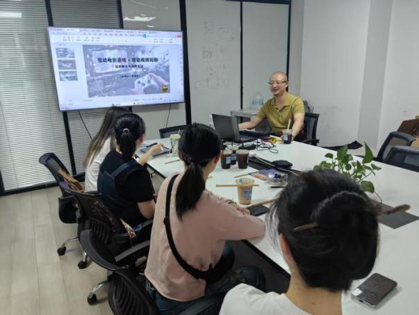 2025年5月17日,本课程的微短剧小分队在牛文佳老师引领下,走进上海交互梦境科技有限公司,开展互动短剧实践活动。通过分析企业项目案例、了解工业化创作流程,同学们对影视与游戏融合背景下的叙事新形态作了深入探索。