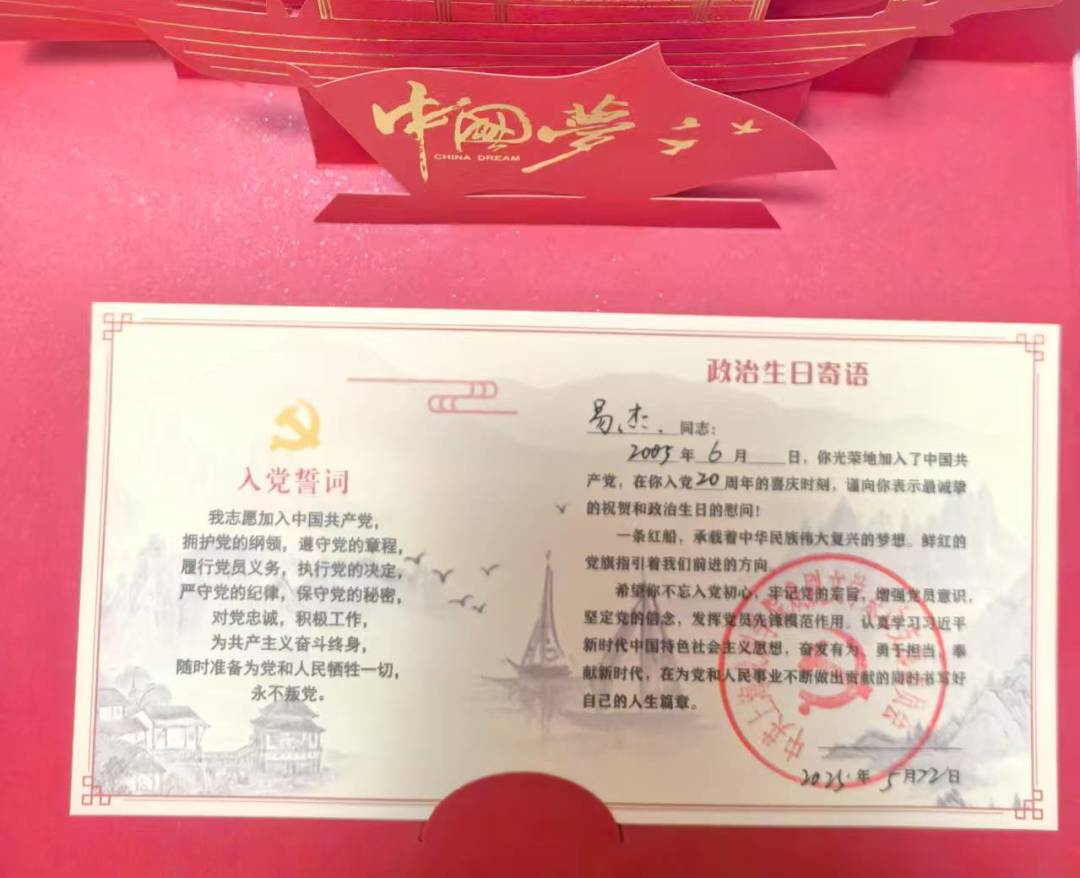从今年开始,戏文系党总支教师党支部按照季度,陆续为党员们过集体政治生日。此次过集体政治生日的党员教师,都是在4-6月期间加入中国共产党的。教师党支部书记李冉代表支部,分别向方军、沈亮、彭勇文、姚琨、周南等党员教师颁发了“政治生日卡”,勉励大家不忘入党初心、牢记育人使命,在日常工作与生活中自觉发挥党员先锋作用。正在西藏挂职的党员教师易杰的入党日期也在本季度,因此支部将通过邮寄的方式为他送去“政治生日卡”。