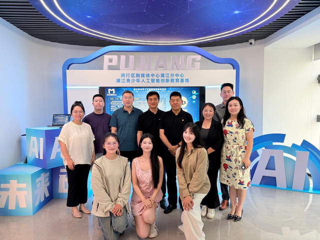 最后一站,师生们来到闵行融媒体中心浦江分部。在参观过程中,数字人技术的实时互动演示与青少年活动中心的科技创新实践项目令人印象深刻。企业负责人介绍了数字技术在媒体内容生产、文化传播中的应用场景,展现了传统媒体与新兴技术融合的发展趋势,为影视专业学生提供了技术赋能创作的新思路。