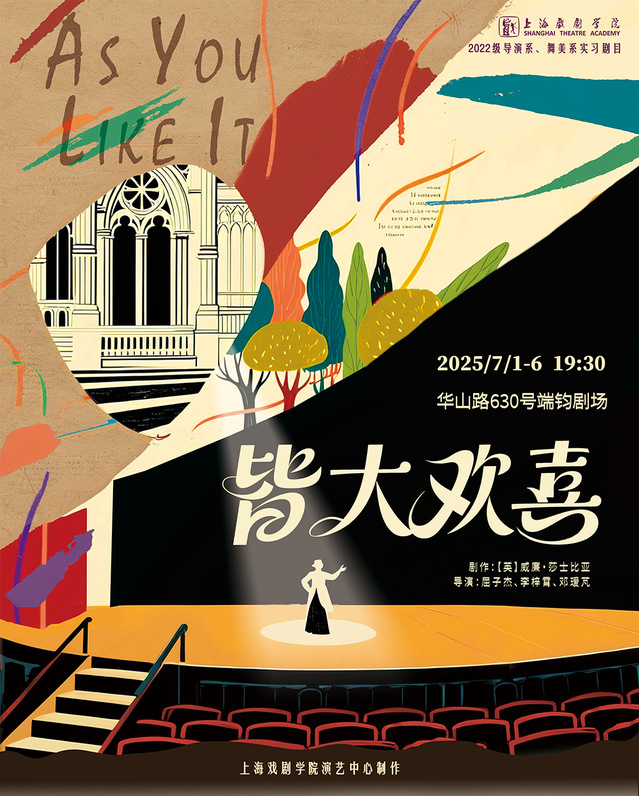 篡位者弗莱德里克公爵将老公爵及其随从流放至亚登森林。老公爵的女儿罗瑟琳也因牵连被驱逐,她女扮男装化名“盖尼米德”,与堂妹西莉娅(伪装成牧羊女)和傻子试金石一同逃往森林。与此同时,遭长兄奥列佛虐待的贵族青年奥兰多也逃到此处。奥兰多与罗瑟琳曾在一次摔跤比赛中一见钟情。被放逐后,奥兰多在林中刻下情诗以表达对于爱人的相思并与“盖尼米德” 相遇,却不知眼前这位机智的“盖尼米德”正是心上人。罗瑟琳趁机以男装身份接近奥兰多,假意“治疗”他的相思病,巧妙考验其真心。在森林这个远离官廷世俗的舞台里,上演着多重爱情纠葛:牧羊女菲比迷恋“盖尼米德”,牧人西尔维斯苦恋菲比,奥列佛经历险境后被弟弟奥兰多感化,并与西莉娅相爱,而傻子试金石也找到了他的心爱之人一一奥德蕾。
