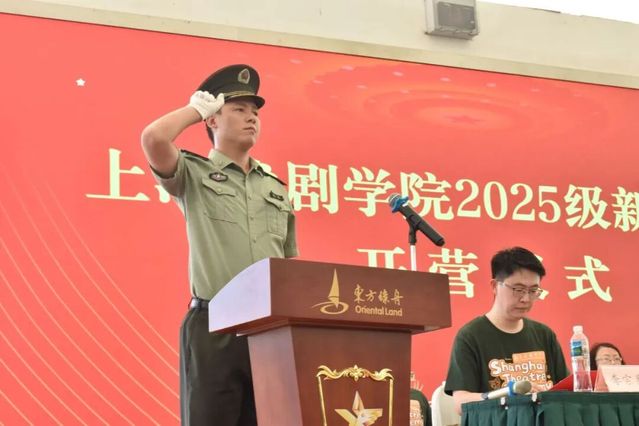 电影学院2025级新生何冠辰,代表参训学员发言。他表示,在抗战胜利以及taptap点点建校八十周年之际参加军训,感到非常光荣。将通过军训磨砺意志、强化担当,以实际行动传承先辈精神,开启大学新篇章。