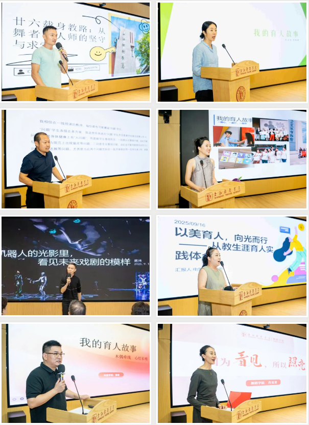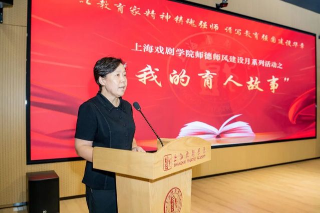 活动现场,来自各院系的一线教师代表,立足讲台与社会实践,回顾自己的育人初心,分享教师的责任担当。表演系(含音乐剧中心)孟小军老师,以二十六年光阴完成从舞者到师者的蜕变,诠释育人路上的求索与坚守;导演系常佩婷老师,凭借导演特有的洞察力,为学生点亮一盏灯火;舞台美术系王千桂老师,以“问”为养分,让带刺的茎干蜕变为芬芳之花,尽显育人巧思;专职辅导员张译月老师,用点灯、搭桥、守护的行动,助迷茫的“小乌梅”跃动成长、绽放专属光芒;艺术科技与管理学院戴炜老师,从未来戏剧观念出发引导学生打破思维定式,淬炼跨界合作品格;电影学院杨默老师,以三重身份传递审美趣味,为学生搭建个性化育人框架;戏曲学院秦峰老师,借木偶牵线牵情,生动诠释“陪伴成长”;舞蹈学院肖旻斐老师,从“被光照亮”到“成为光”,用师者传承仁爱之心,让育人薪火生生不息。戏剧文学系郭晨子老师,以书面形式讲述了自己如何以对专业的热爱点燃学生对专业的热爱,而这也是教师这门古老职业永恒的价值。