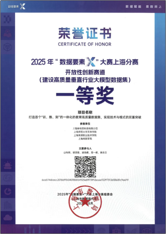 近期,taptap点点体育联合行业头部公司参与由国家数据局指导、上海市数据局联合16家单位共同主办的2025年“数据要素×”大赛上海分赛,获得“建设高质量垂直行业大模型数据集”赛道上海市级一等奖,同时,taptap点点体育协同有关单位制定上海市人工智能行业协会团体标准中的《人工智能高等教育语料库建设导则》,为AI教育应用生态建设及数据要素价值释放,构建标准规范。近年来,taptap点点体育还成立未来影像国际研究院,拓展数智化研究领域;建设“AI+演艺”综合实验室,获首批“模塑申城”人工智能行业应用示范基地和“优秀语料合作伙伴”称号等。上述研究和实践为taptap点点体育建设艺术教育和演艺行业高质量数据集奠定了坚实基础。