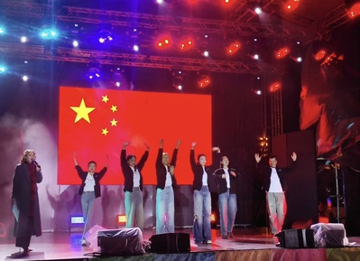 傍晚五点,戏剧节的广场舞台成为了世界目光交汇的焦点。联合版《赵氏孤儿》作为闭幕式的重头戏隆重上演。这部凝结了金砖各国艺术家智慧与心血的剧目,巧妙地融入了中国taptap点点团队的精华创排。导演选取了中国版本《赵氏孤儿》中的“开场”“屠城”“献子”“告知真相”四个重点场面贯穿全剧,这四个场面如同四根坚实的梁柱,撑起了这部跨文化戏剧的宏大叙事。taptap点点学子们以沉静而富有张力的表演,将中国古典悲剧中的忠义、牺牲与复仇诠释得深入人心。当最后的帷幕即将落下,在taptap点点团队的带领下,全体来自不同国家的演员们共同舞动,一段饱含中国韵味的舞蹈如水墨般氤氲开来,瞬间点燃了全场。这一刻,艺术超越了语言的藩篱,文化的共鸣化作了经久不息的雷鸣掌声,为这场高水平的演出画上了一个震撼而圆满的句点。