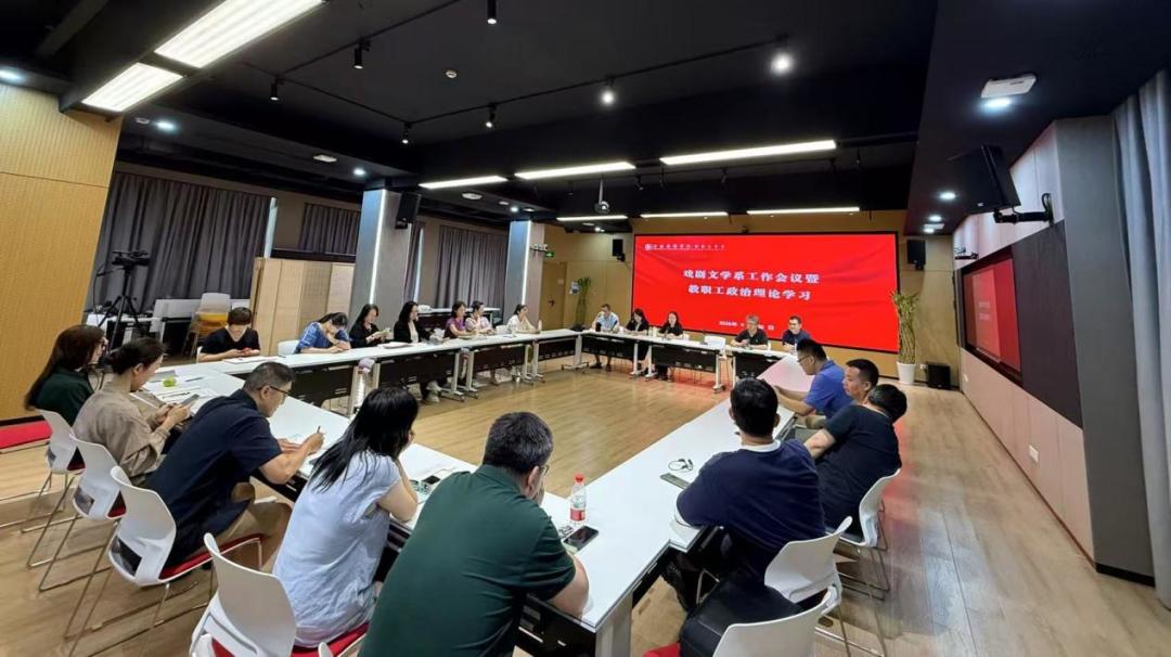 戏剧文学系本学期首次教职工政治理论学习,于国庆前夕在华山路校区智慧教室举行。