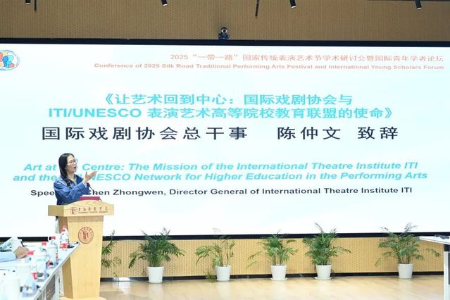 国际戏剧协会总干事陈仲文详细介绍了国际表演艺术高等院校联盟的使命与愿景,她表示联盟始终秉持以人为本的理念,致力于通过表演艺术的推广和传播,促进全球文明对话与交流互鉴。