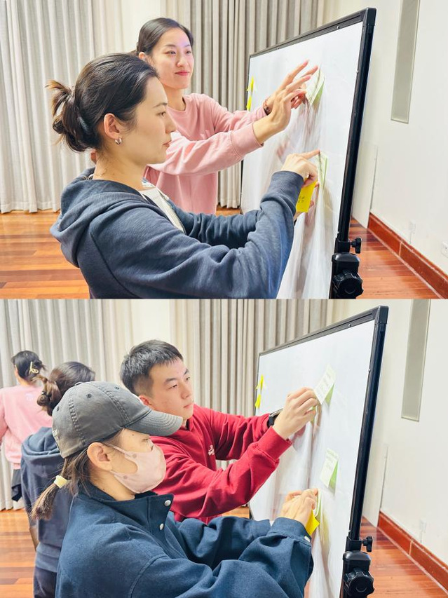 为深化培训实效,本次工作坊设置“智慧共享墙”环节,学员围绕“最大认知突破”与“首项改进措施”撰写并张贴便签,形成可共享、可落地的行动承诺。整场培训节奏紧凑、互动频繁,在笑声与掌声中实现从“知识输入”到“能力内化”的转变,为提升学生党员发展质量注入新动能。
