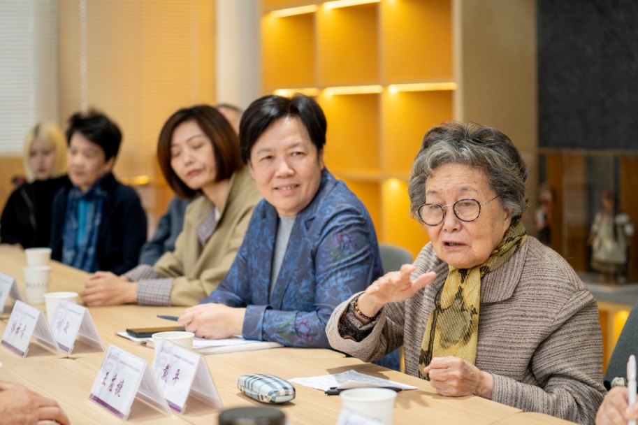 舞美系教师代表石磊老师随后发言,她先为大家诵读了范从博老师对应老师的怀念文章,并和校档案室顾问范和生、舞美系资深教员龚志英两位老师一同回忆了当年与王辅世、应玉兰两位老教师在工作生活中接触的点点滴滴,缅怀了他们为教育、为艺术的无私奉献精神。