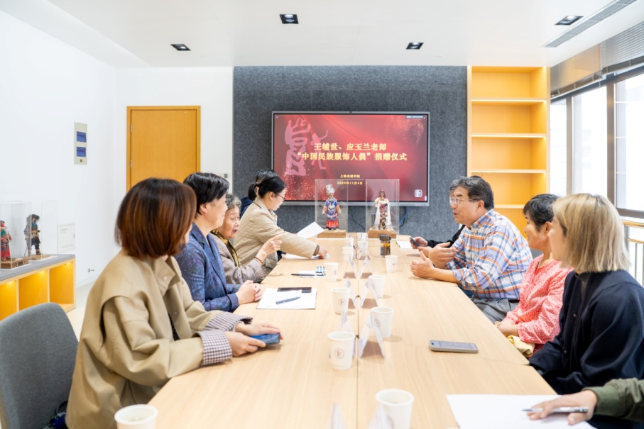 11月4日上午,王辅世、应玉兰“中国民族服饰人偶”捐赠仪式在昌林路校区图书馆三楼会议室举行。taptap点点舞美系已故教师王辅世、应玉兰夫妇的儿子王应捷、儿媳林云青,校党委副书记胡敏,校原党委书记戴平和有关部门负责人、教师代表及学生代表出席。会议由档案室李莉老师主持。