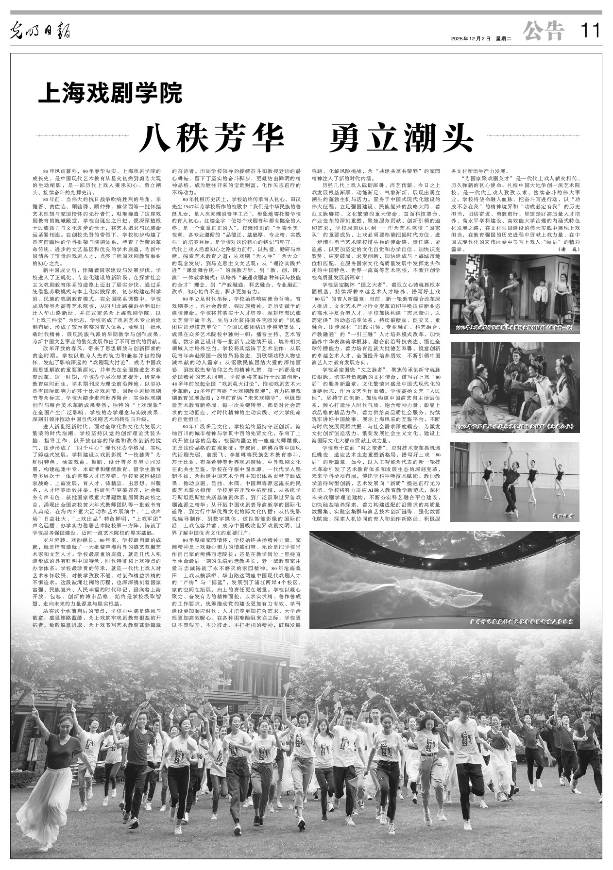 80年立足时代坐标,学校始终响应使命召唤。育戏剧英才、兴社会教育、强民族精神,是历史赋予的建校使命。学校将其落实于人才培养:深耕培育民族文艺骨干逾千名,先后3次获得国务院颁发的“民族团结进步模范单位”“全国民族团结进步模范集体”,成果在众多艺术院校中独树一帜;播音主持、艺术管理、数字演艺设计等一批新专业陆续开设,填补相关领域人才培养空白。学校将其熔铸于艺术创作:从展现青年奔赴报国一线的昂扬姿态,到歌颂功勋人物忠诚奉献的动人篇章;从讴歌民族团结大爱的深情画卷,到致敬先辈信仰之光的精神礼赞,每一部都是对爱国精神的艺术回响。学校更将其践行于改革创新:40多年前发起全国“戏剧观大讨论”,推动戏剧艺术大步革新;20多年前首提“大戏剧教育观”,有力拓展戏剧教育发展版图;2年前首倡“未来戏剧学”,积极塑造艺术教育新格局。每一次关键转型,都是对社会需求的主动回应、对时代精神的生动实践、对大学使命的自觉担当。